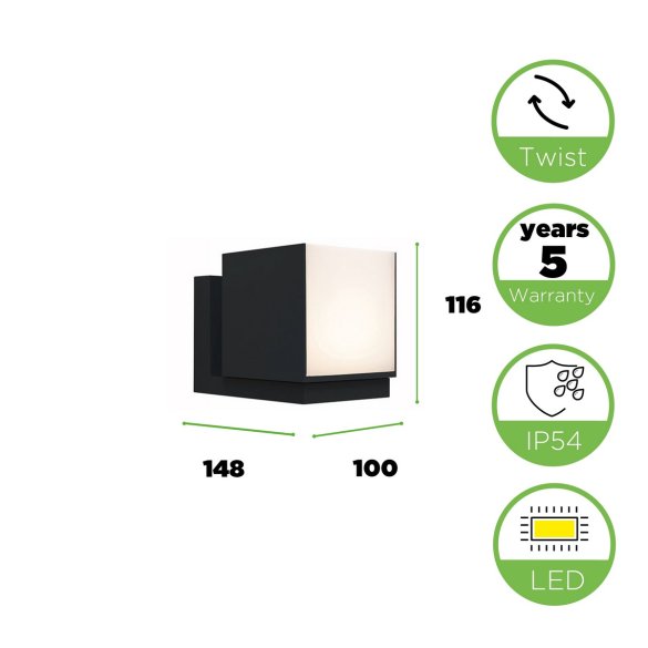CUBA IP54 Kolor czarny mat, [Zobacz film] 5 lat gwarancji.