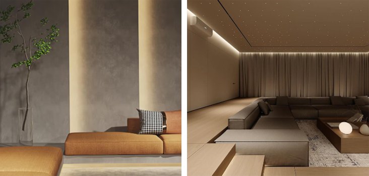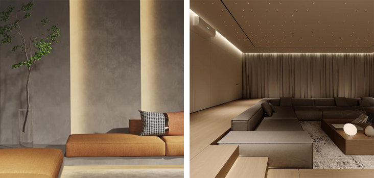 Oświetlenie dekoracyjne – np. podświetlenie sufitów podwieszanych, wnęk czy ścian TV.