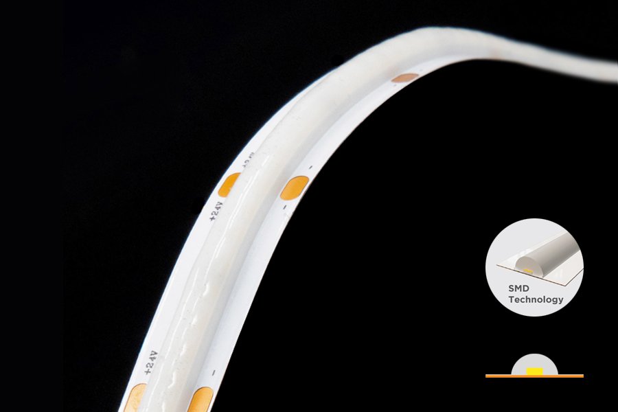 - COB oferują jednolitą linię światła bez widocznych punktów.