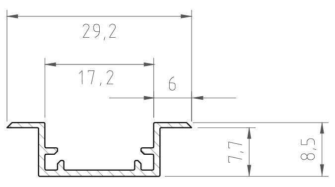 Dzięki swoim niewielkim wymiarom (29 × 8 mm) ten profil jest dyskretny i elegancki. Wykonany z aluminium, zapewnia trwałość i odporność na korozję. Dostępny jest w różnych kolorach, takich jak anodowany, biały i czarny, aby dopasować się do Twojego wnętrza.
