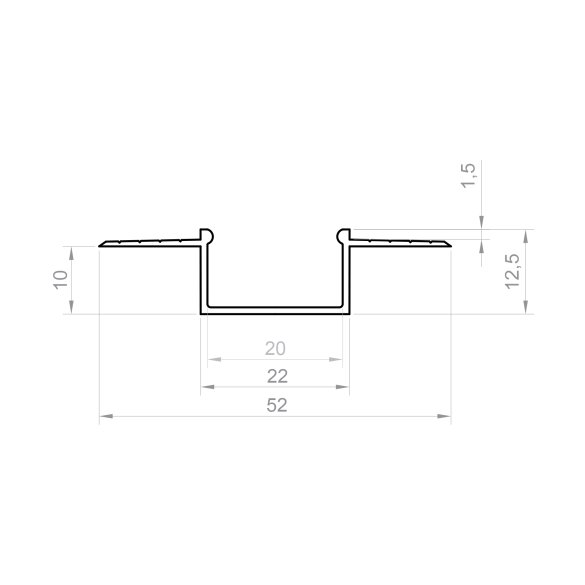 Wymiary profilu wynoszą 52 × 12 mm, a długość może być wybrana spośród opcji: 2000 mm lub 3000 mm. Dodatkowo, profil posiada stopień ochrony IP 20, gwarantujący bezpieczeństwo użytkowania.
