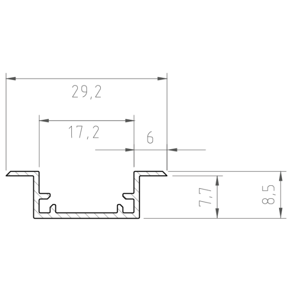 Dzięki swoim niewielkim wymiarom (29 × 8 mm) ten profil jest dyskretny i elegancki. Wykonany z aluminium, zapewnia trwałość i odporność na korozję. Dostępny jest w różnych kolorach, takich jak anodowany, biały i czarny, aby dopasować się do Twojego wnętrza.