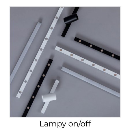 Po ułożeniu lamp w szynie są widoczne otwarte przestrzenie między oprawami. Maskownica licuje szynę z lampami tworząc spójną całość. Najlepiej jest ułożyć lampy w docelowych miejscach i dopiero wtedy docinać maskownicę. Maskownica ma długość 100cm, występuje w obu kolorach białym i czarnym i pasuje do szyny MICRO.