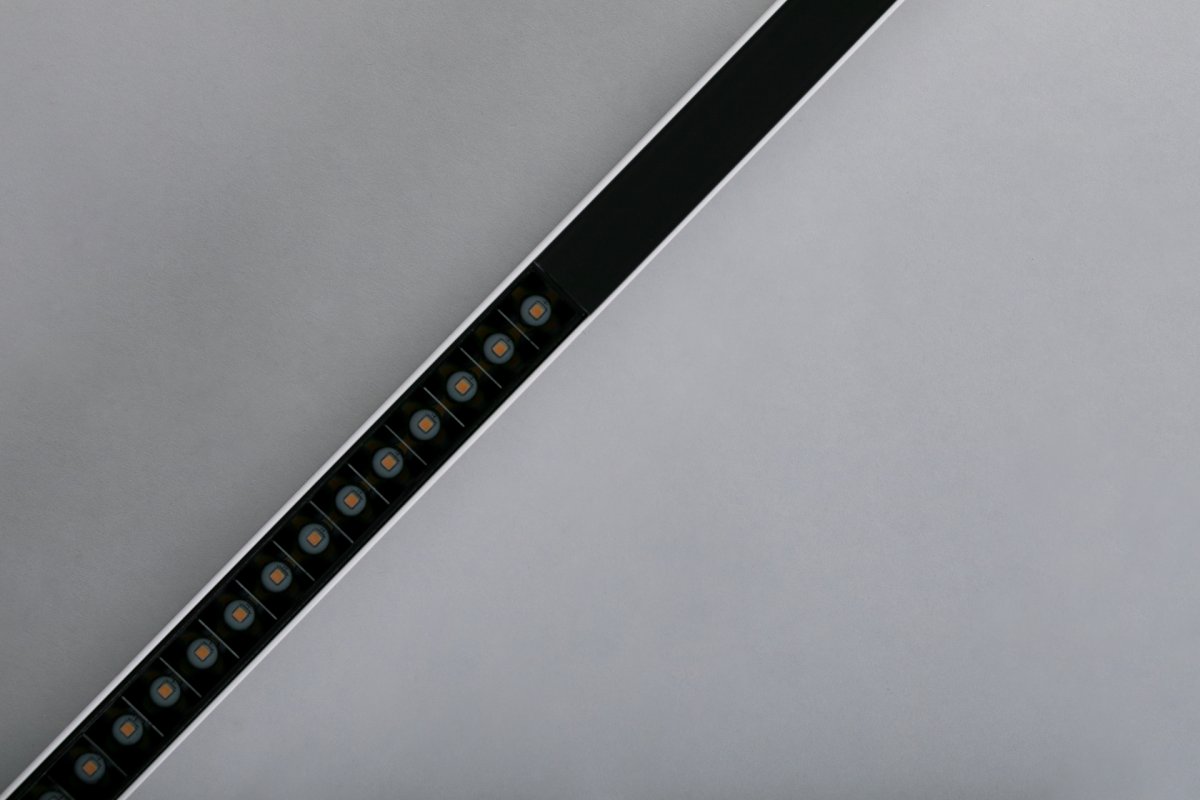 DOTS jest oprawą liniową, która często nazywana jest „oczkami” przez zastosowanie wyraźnych cofniętych soczewek. DOTS dostępny jest w dwóch rozmiarach, temperaturach barwowych 3000K i 4000K oraz w kolorze białym i czarnym. Dzięki zastosowaniu cofniętego źródła światła, oprawa doskonale sprawdzi się w długich korytarzach, gdzie zależy nam na ograniczeniu nieprzyjemnego efektu olśnienia. Kąt świecenia 60° ma jeszcze jedną ciekawą charakterystykę - doskonale nadaje się do doświetlenia podłogi lub biurek znajdujących się bezpośrednio pod oprawą. Tę oprawę polecamy zastosować w przypadku doświetlenia płaszczyzny pracy czyli biurka i blaty robocze. Możemy wybrać wariant podstawowy on/off (włącza i wyłącza oprawę) albo wariant z funkcją ściemniania DALI (wymagane przewody pod system DALI)