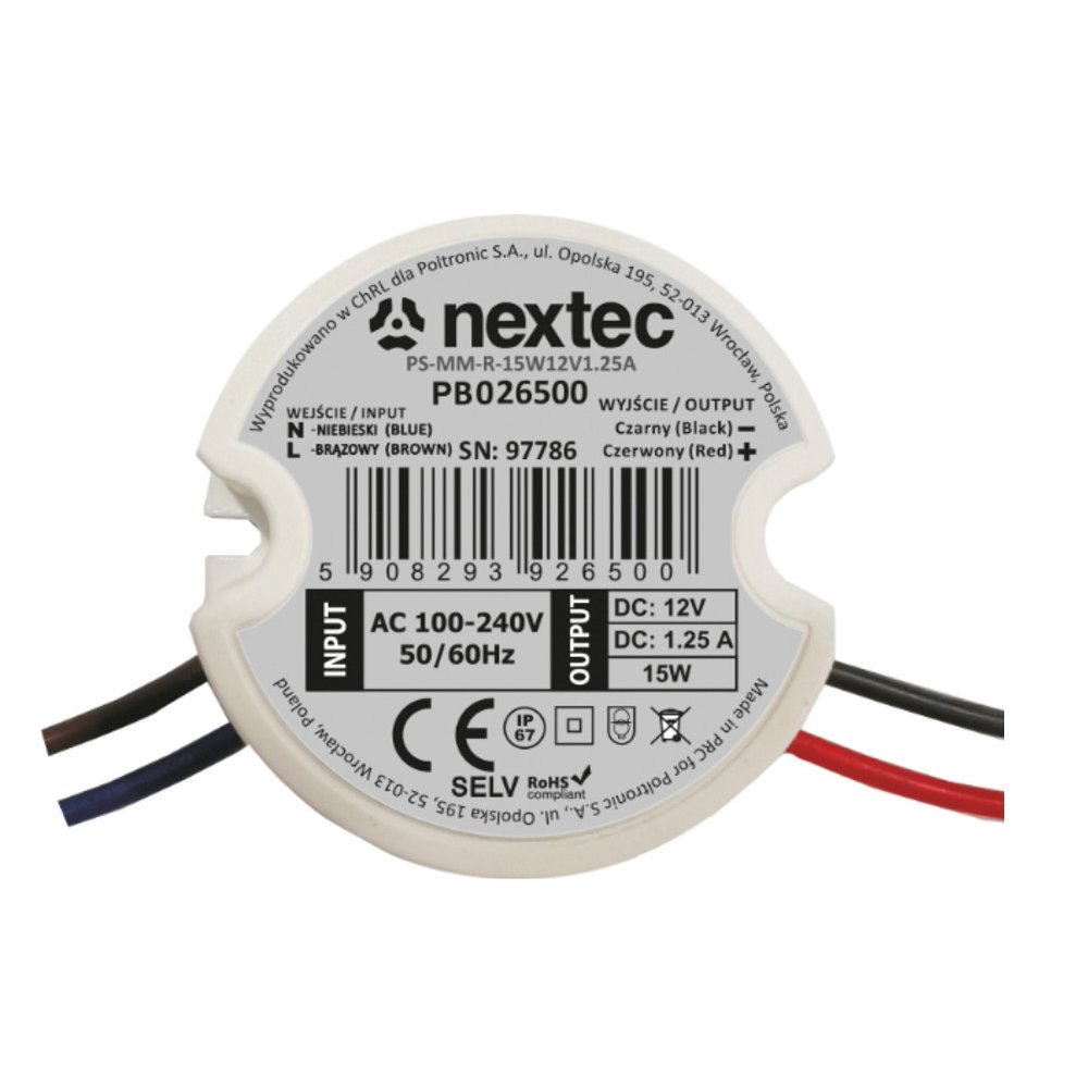 ZASILACZ 12V OKRĄGŁY 15W HERMETYCZNY IP67