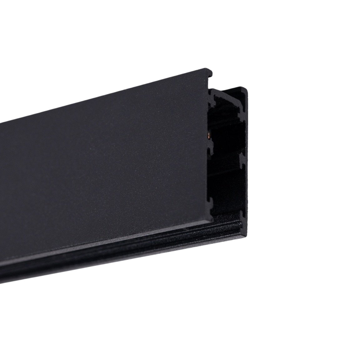 SZYNA MINI typ B jest szyną natynkową o wysokości 38mm. Dostępna jest w kolorze białym i czarnym, w odcinkach 1m, 2m i 3m. Co odróżnia ten system szyn od innych to zdecydowanie mniejsze rozmiary w porównaniu do szyny niskiej A, co sprawia, że jest jeszcze bardziej subtelnym i eleganckim rozwiązaniem oświetlenia ogólnego. Szyna jest wyposażona w dwie pary przewodów, górne do podłączenia zasilania i dolne do podłączenia magistrali DALI. Do szyny jest szeroki wybór akcesoriów montażowych: łącznik 90° (w jednej płaszczyźnie: sufit-sufit), łącznik 90° (w dwóch płaszczyznach: sufit-ściana), łącznik prosty, zaślepki frontowe i końcowe oraz przyłącze zasilające (do zastosowania zasilacza zewnętrznego). Może być stosowana jako szyna natynkowa bądź zwieszana, do montażu na wykończonym suficie.