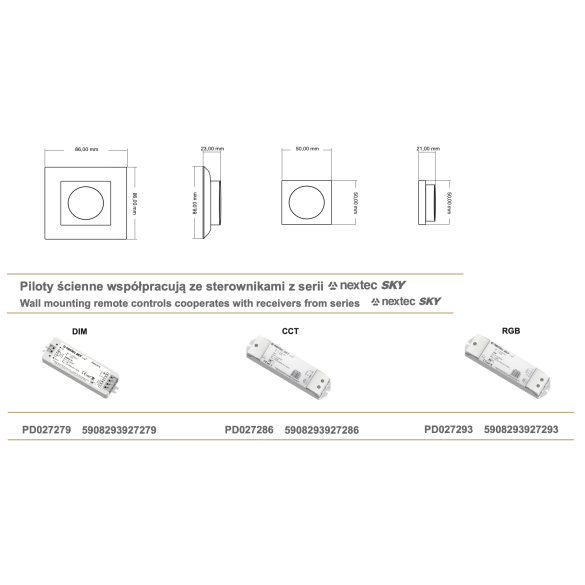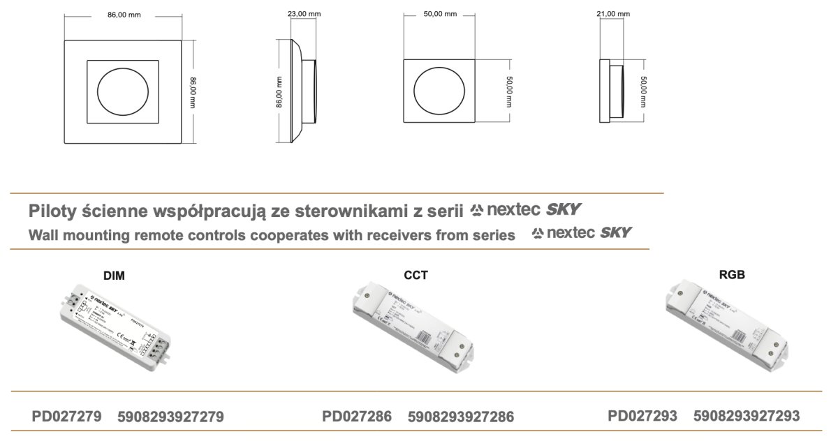 - - Wymiary panelu: 86 x 86 x 23 mm