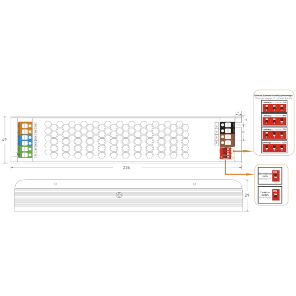 - Napięcie wejściowe: 230V